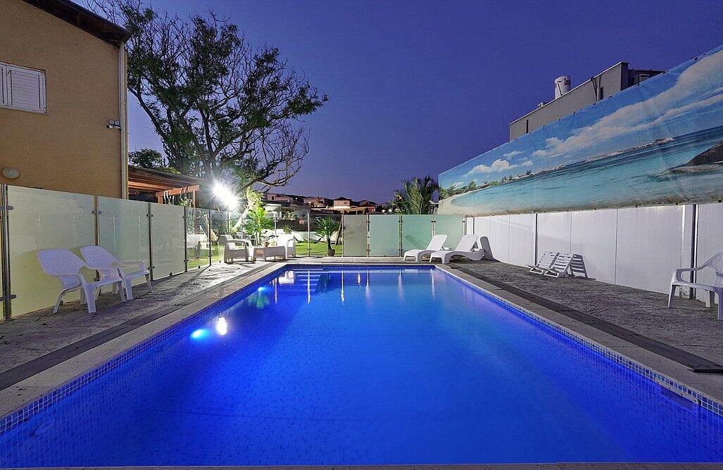 4.השימוש בבריכה ובמתקנים הנלווים הינו באחריות המתרחצים בלבד; אין מציל והאורחים מתחייבים להישמע לתדרוך והוראות בעלי הצימר.