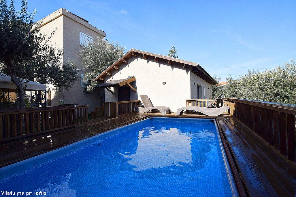 4.השימוש בבריכה ובמתקנים הנלווים הינו באחריות המתרחצים בלבד; אין מציל והאורחים מתחייבים להישמע לתדרוך והוראות בעלי הצימר.
