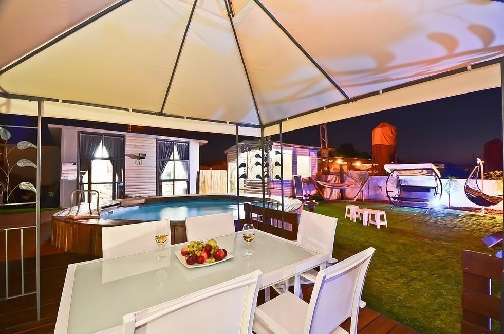 המתחם החיצוני של כל סוויטה כוללת בריכת שחייה, ג'קוזי ספא, חצר, פינת מנגל ופינות שיזוף.