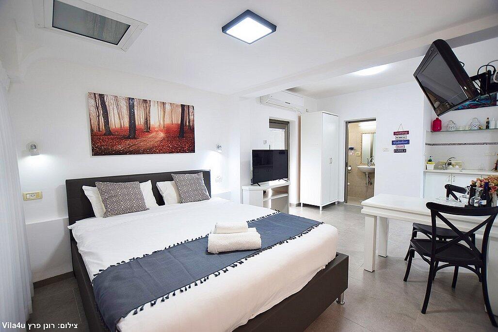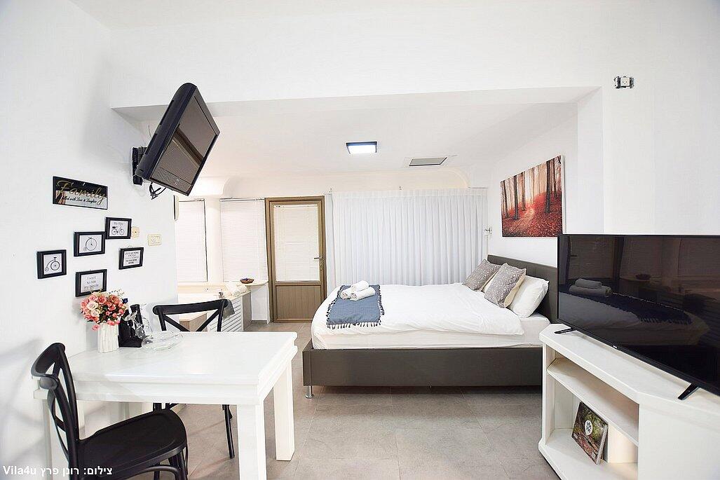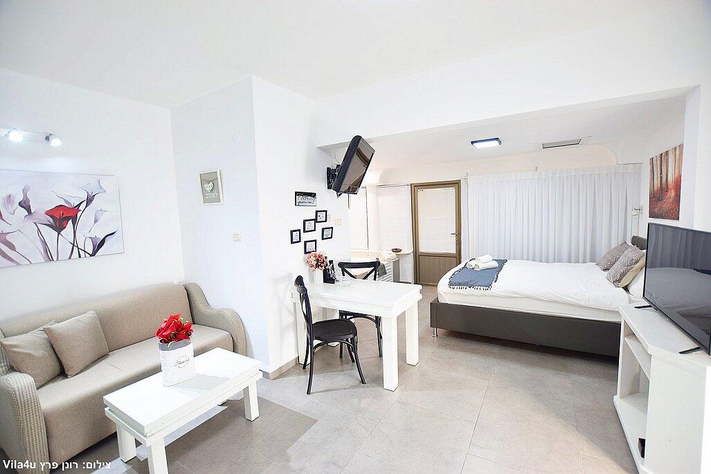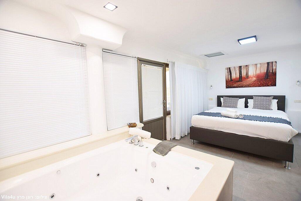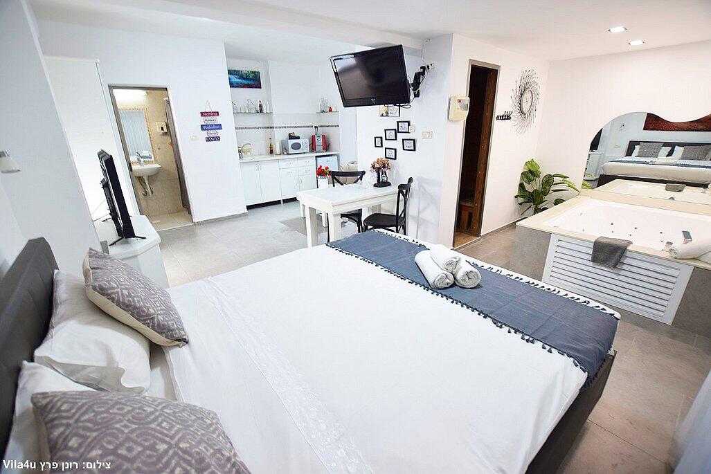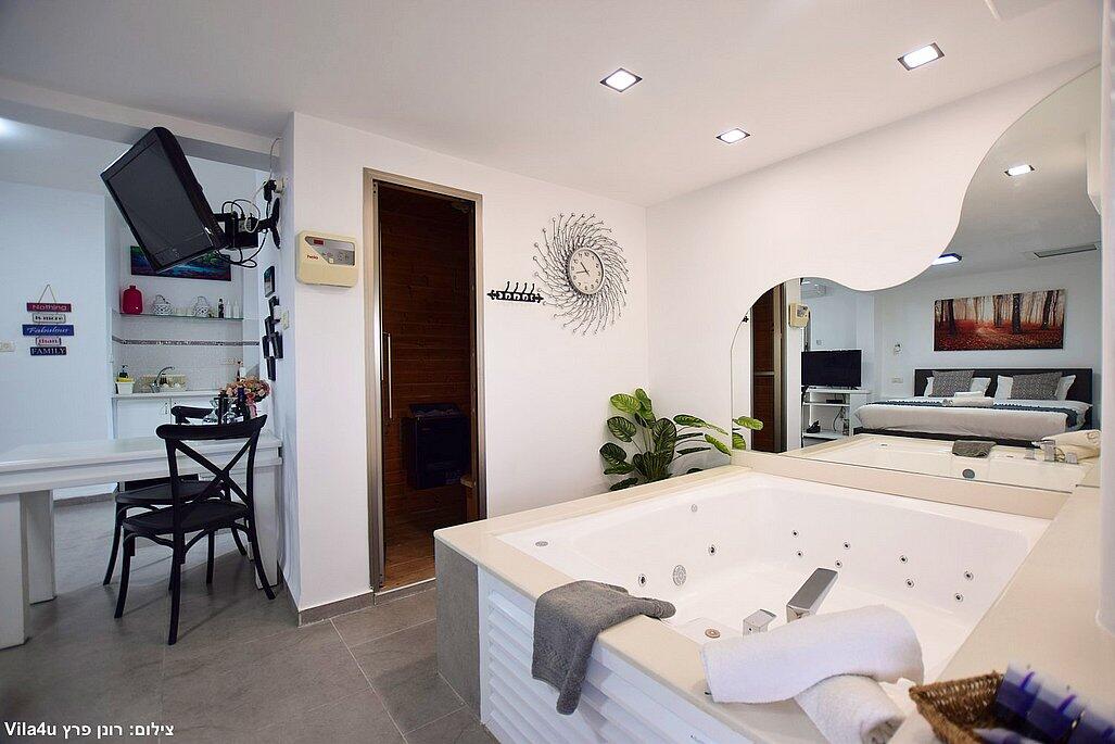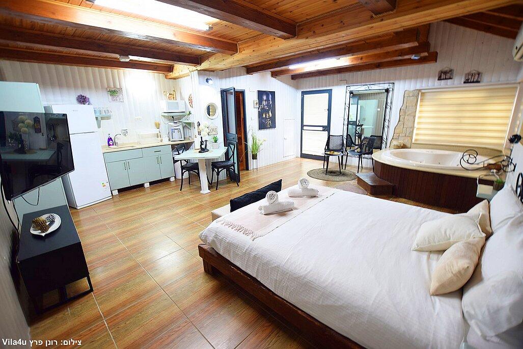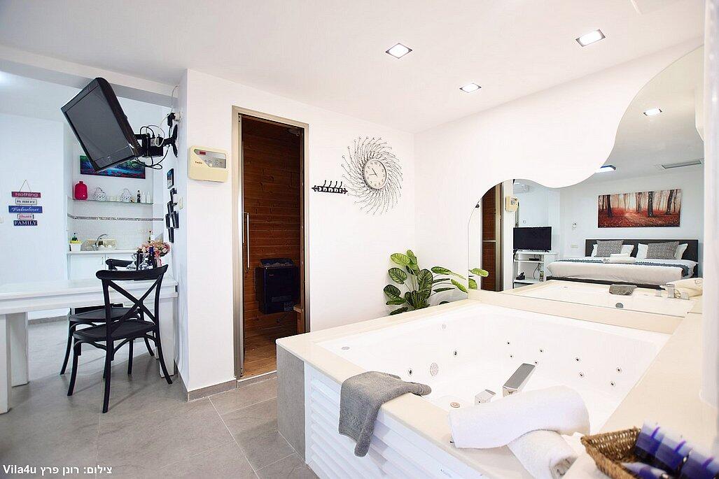 בכל סוויטה: מיטה זוגית נוחה, ג’קוזי פרטי, סאונה יבשה, מטבחון, סלון, אינטרנט וטלוויזיה חכמה.