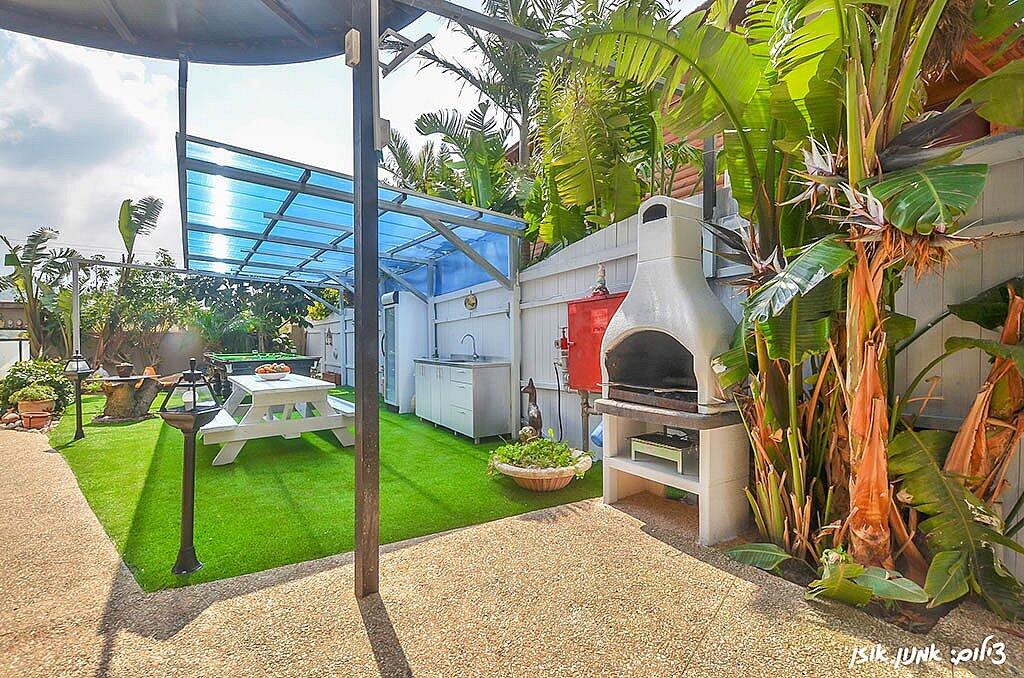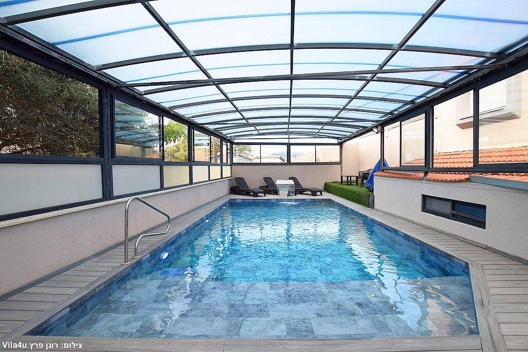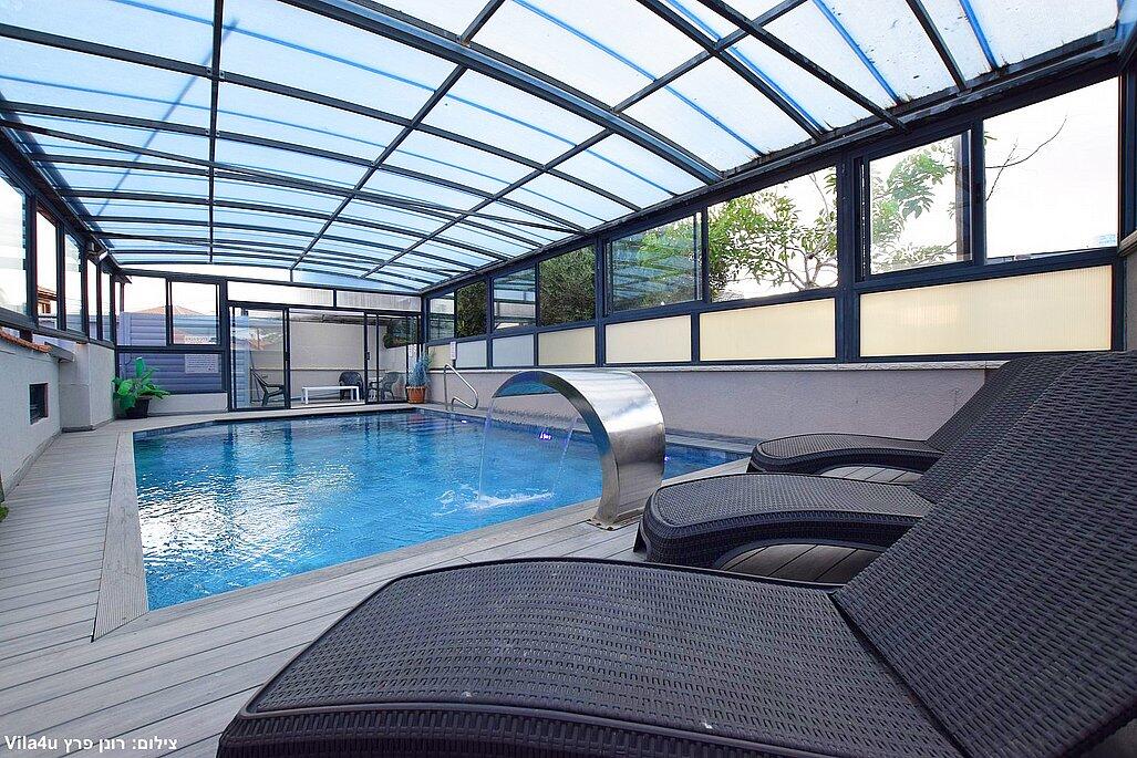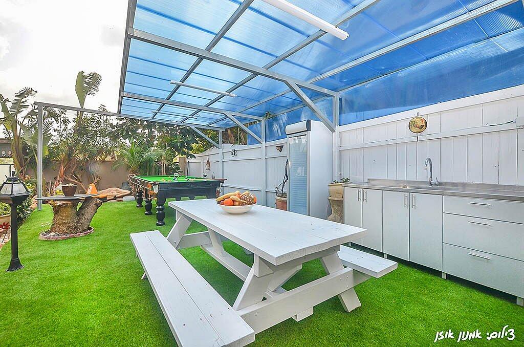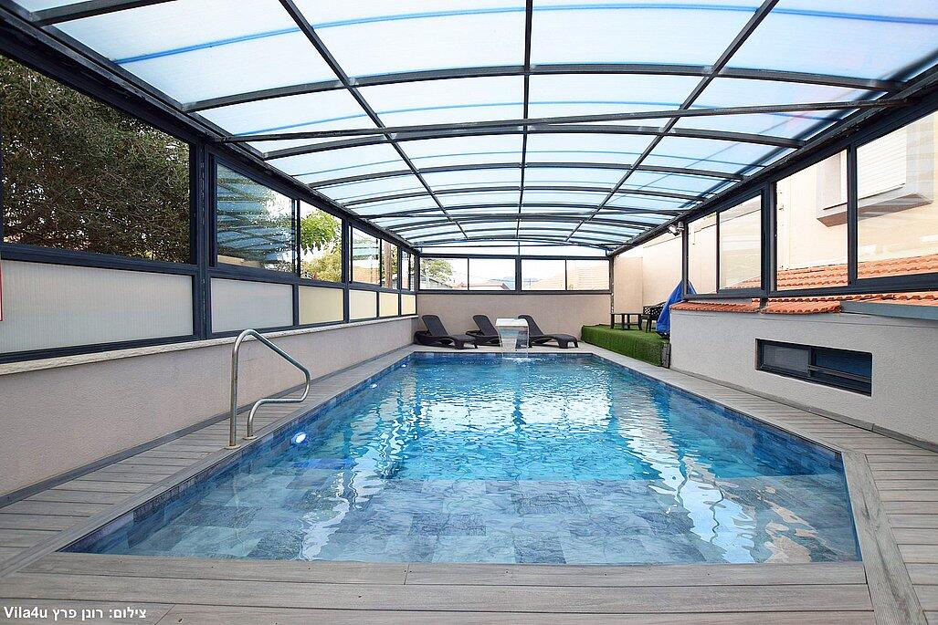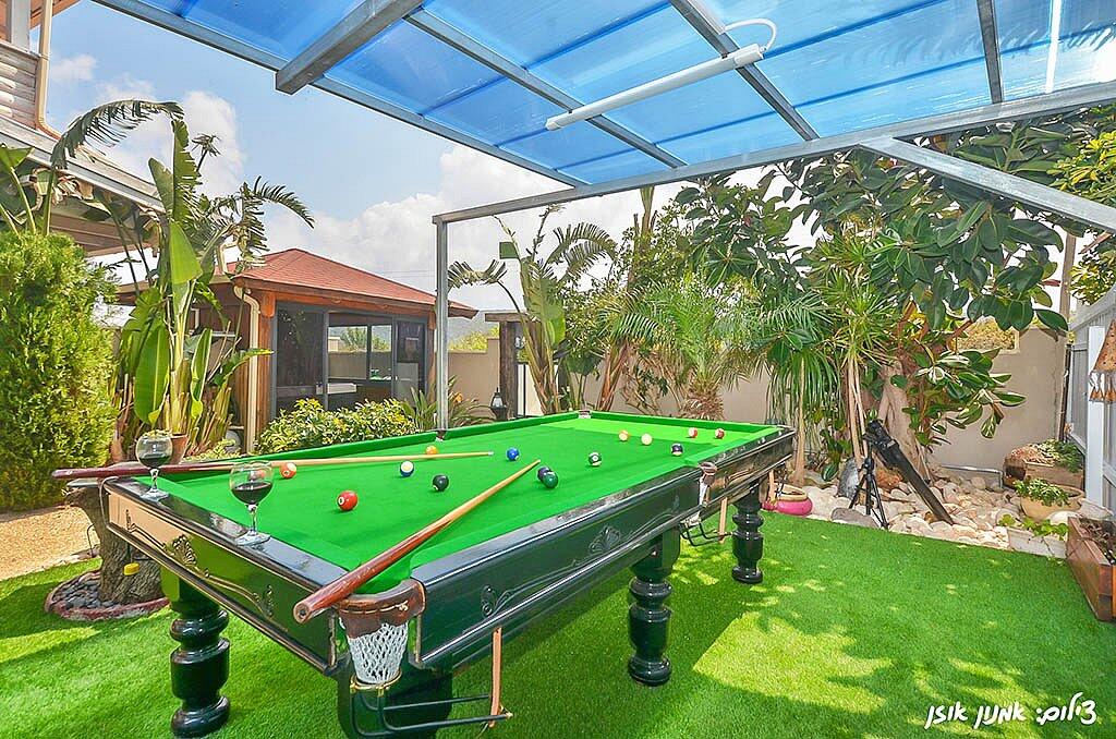 המתחם החיצוני מציע בריכה מחוממת, ג'קוזי ספא, סאונה, ערסלים ופינת BBQ.