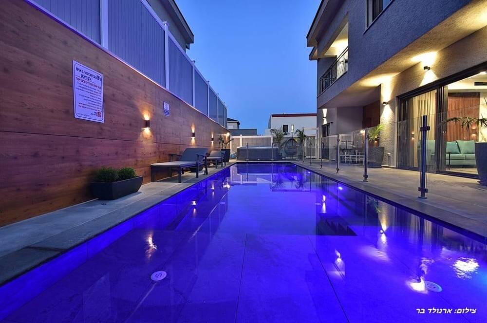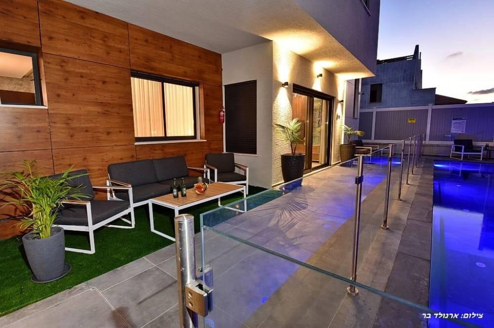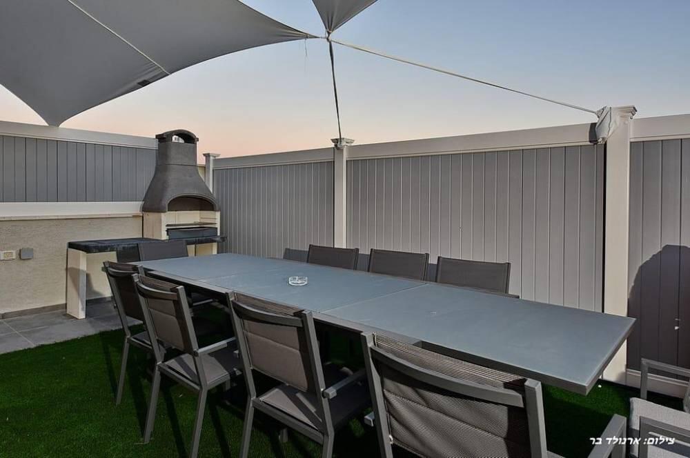 המתחם החיצוני מציע בריכה מגודרת ומוארת בלילה, שולחנות משחק, ריהוט גן איכותי ועמדת מנגל.