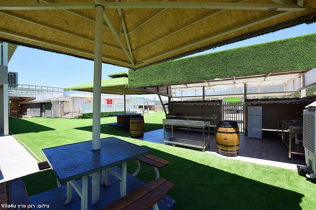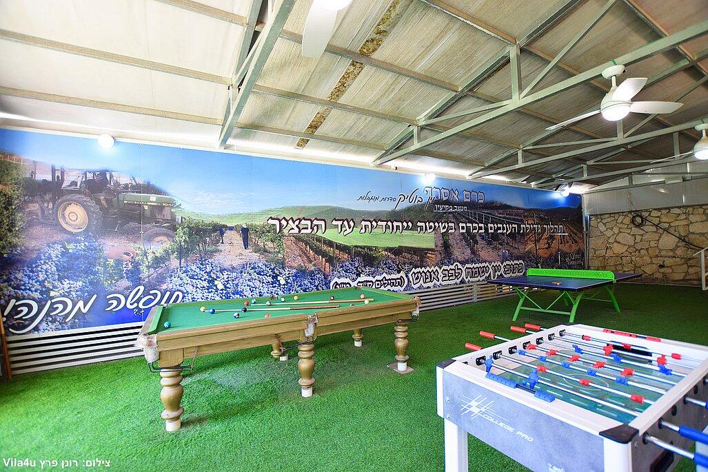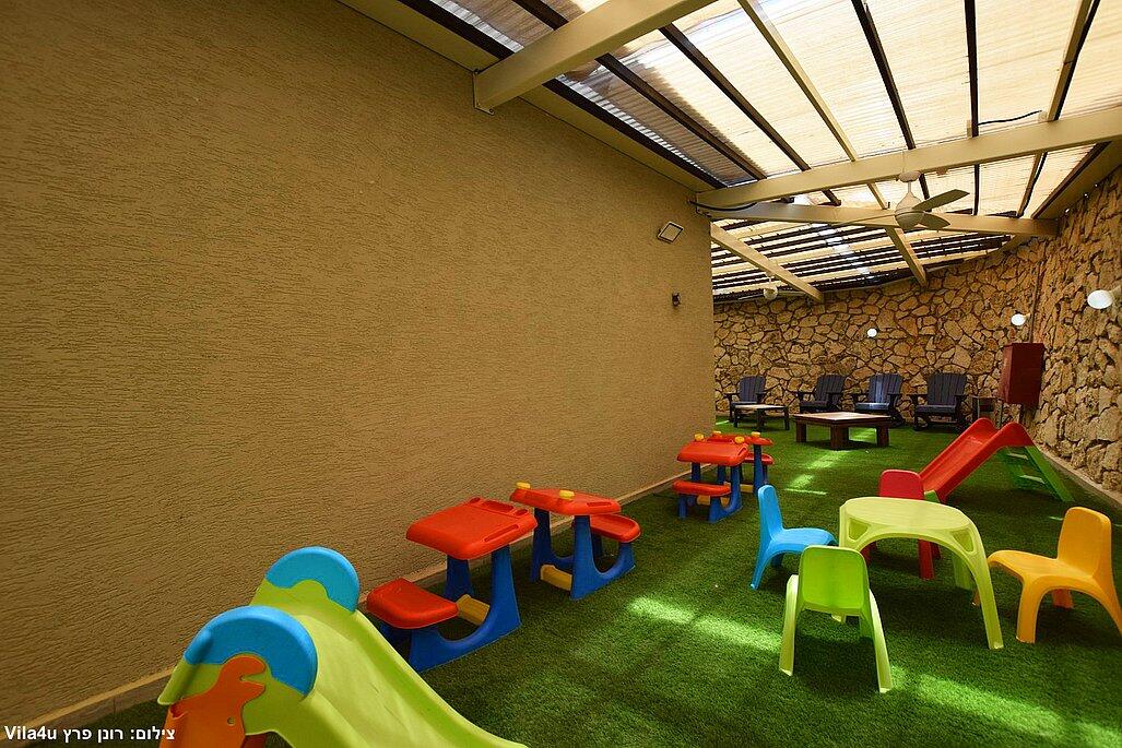 מגרש כדורגל, משחקי שולחן, ופינת משחקים לילדים.