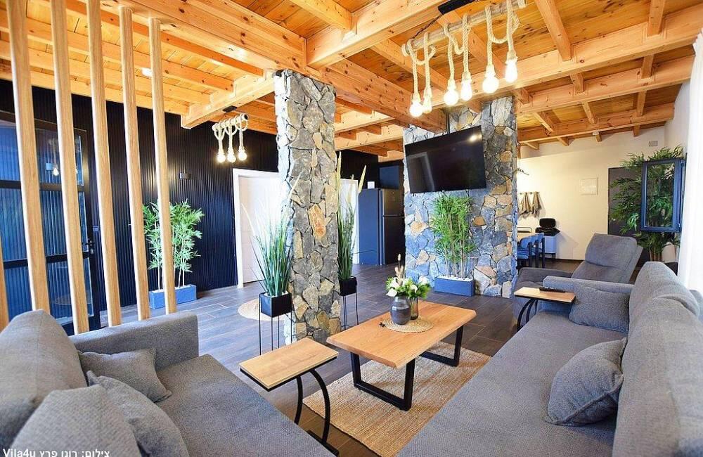 מעוצב, מרווח מאד מאד, מתחם חוץ עצום ויפהפה, מאד נקי ומושקע, נוף משגע ופרטיות מושלמת! יוני המארח איש מדהים וקשוב לכל צורך! היינו חמישה זוגות ו20 ילדים ונהננו מכל רגע!