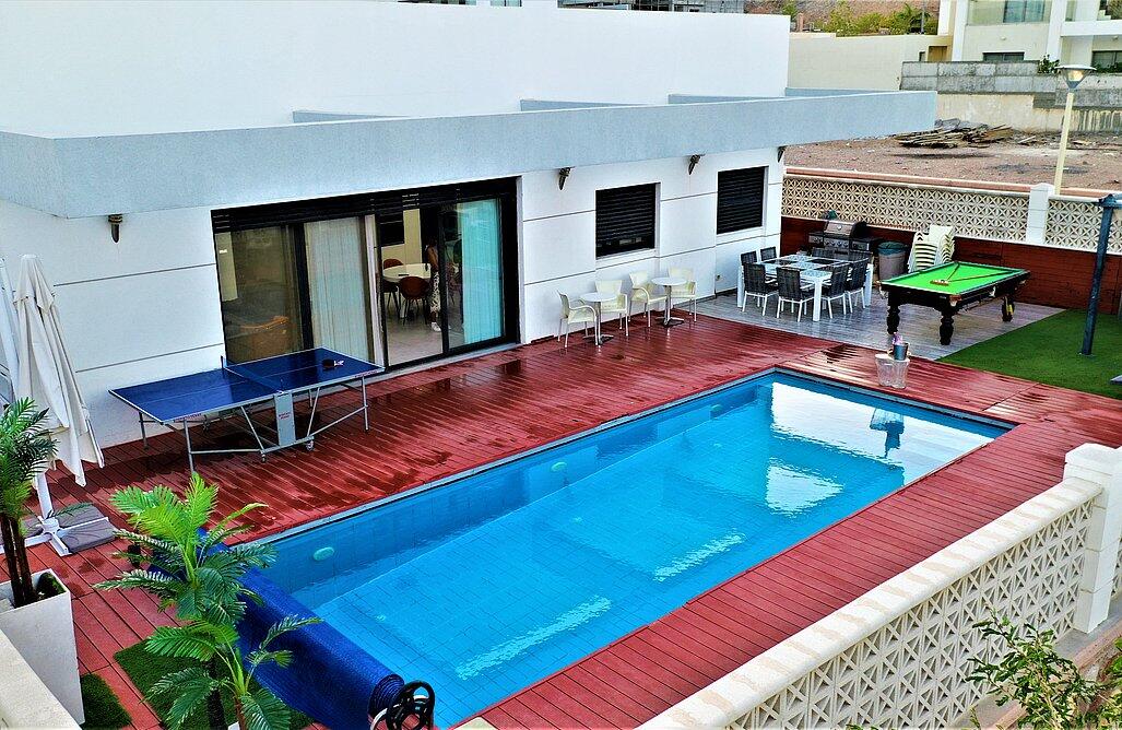 רוצים לנפוש בעיר אילת? מחפשים וילה פרטית ליהנות בה עם החברים הטובים ו/או המשפחה? הכירו את וילה ונציה – וילה מושלמת ומעוצבת ברמה גבוהה הממוקמת בעיר אילת ובה תוכלו ליהנות עם 4 חדרי שינה, סלון יוקרתי, פינת אוכל, בריכת שחיה, מיטות שיזוף, משחק שולחן פינג פונג, משחק סנוקר שולחן, מנגל ועוד.