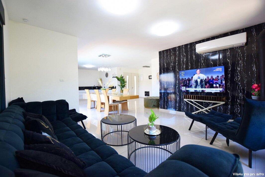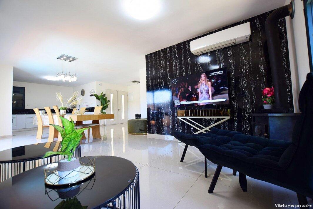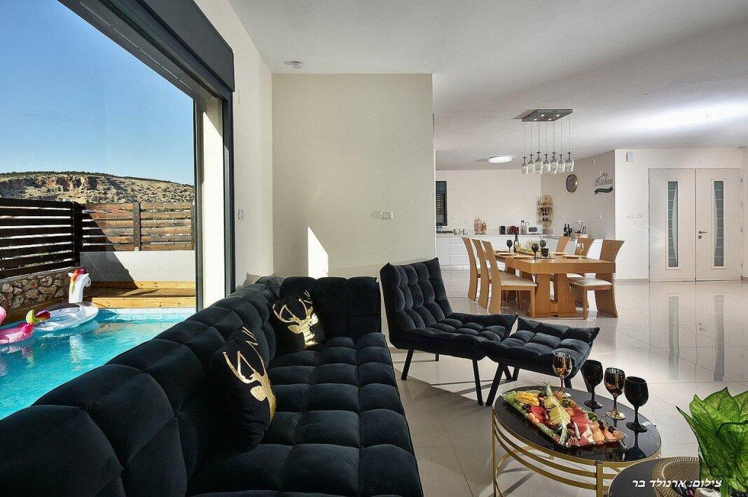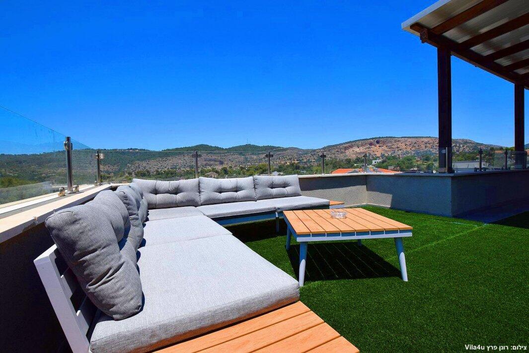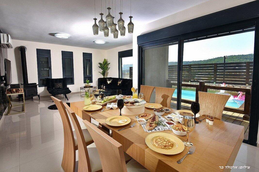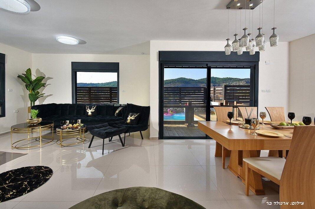 הוילה בנויה מ2 מפלסים ובתוכה 6 חדרי שינה זוגיים, סלון גדול, מטבח מאובזר ומתחם חיצוני עם בריכת שחייה מגודרת מול נוף עוצר נשימה, משחקי שולחן ומשחקים לילדים ועוד...