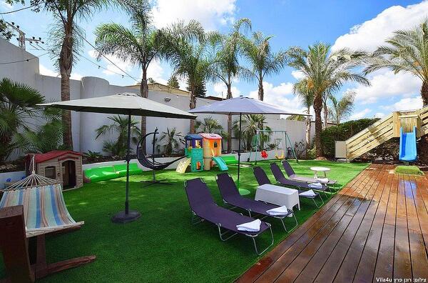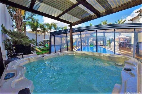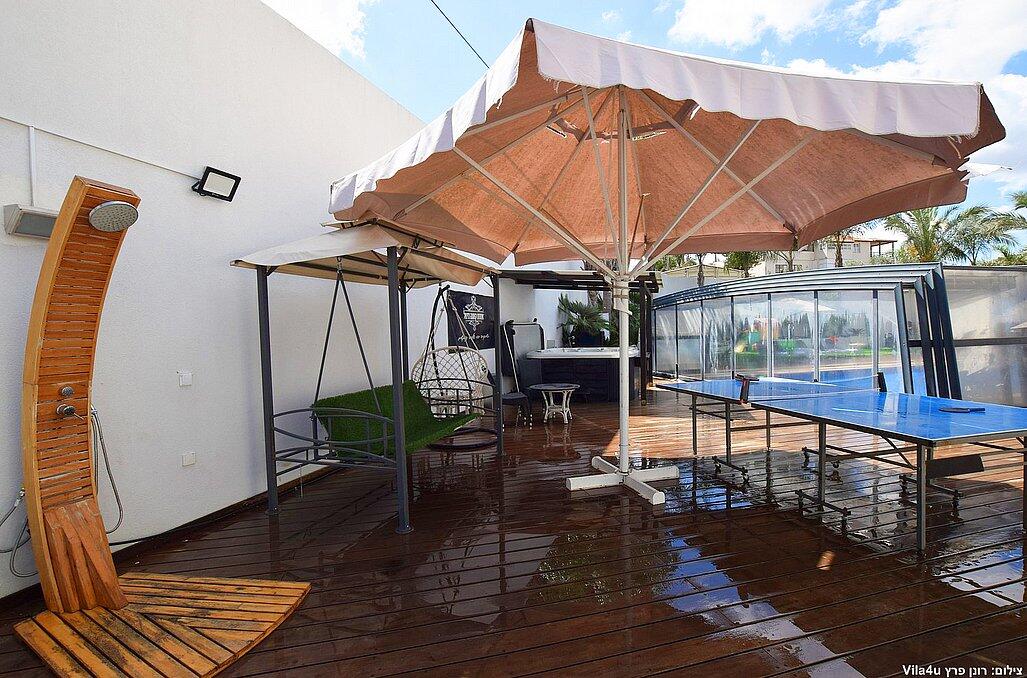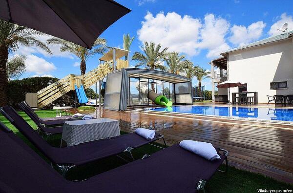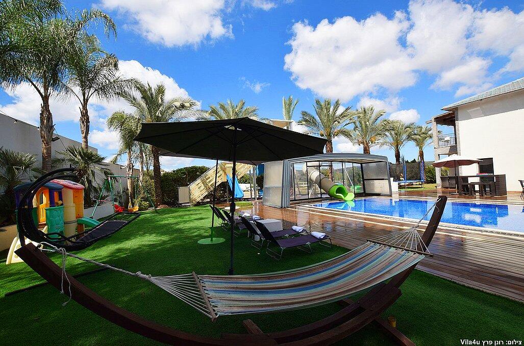 במתחם החיצוני תתפנקו מבריכת שחייה ענקית אשר מחוממת ומקורה בעונת החורף, ג'קוזי ספא, משחקי שולחן, מדשאות ועוד..