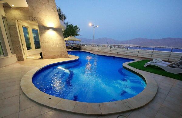 וילה מול ים - וילת נופש לחופשה מהנה בעיר החמה אילת. הוילה ממוקמת מול נופו המרהיב של מפרץ הים, הוילה מונה 5 חדרי שינה מפנקים עם חדר רחצה פרטי, מתם משותף הכולל סלון רחב ידיים, מטבח מאובזר, פינת אוכל ועוד.. במתחם החיצוני תהנו מבריכת שחייה ענקית עם ג'קוזי ספא מובנה הפונה לנוף עוצר נשימה, ריהוט גן, פינות שיזוף ועוד..הוילה מתאימה לנופש משפחות, זוגות ולא מתאימה למסיבות רועשות ולבני נוער