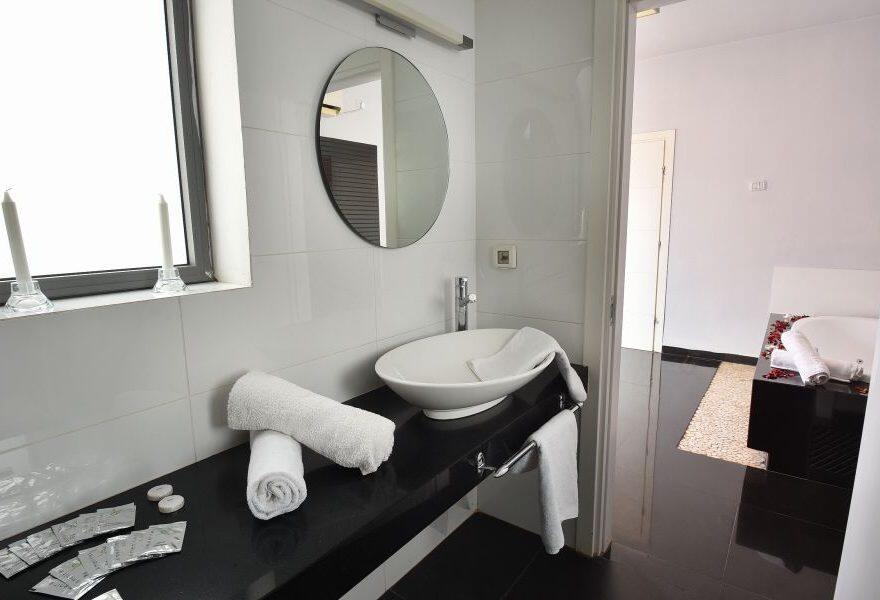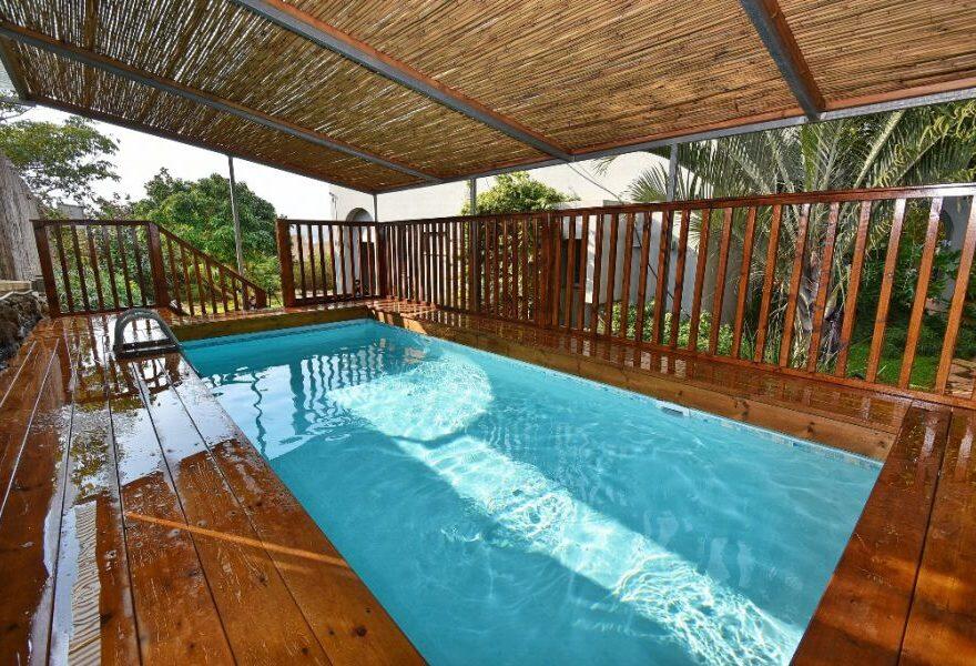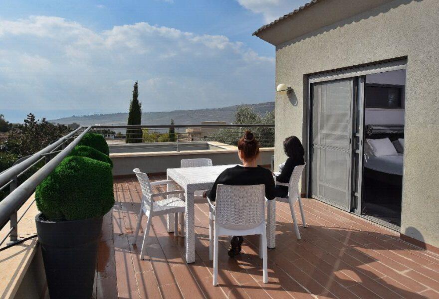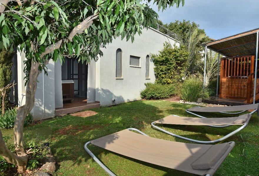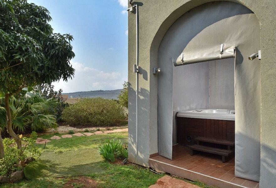 המתחם החיצוני כולו עטוף בטבע ונוף מכל עבר ובו בריכת שחייה מחוממת ומקורה עם בר מסביבה, ג'קוזי ספא גדול, סאונה יבשה, פינות שיזוף ואפילו גינת תבלינים.