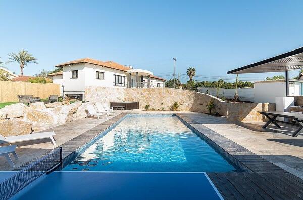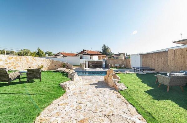 בחוץ יש בריכה מחוממת ג'קוזי מטבח גן ועוד...